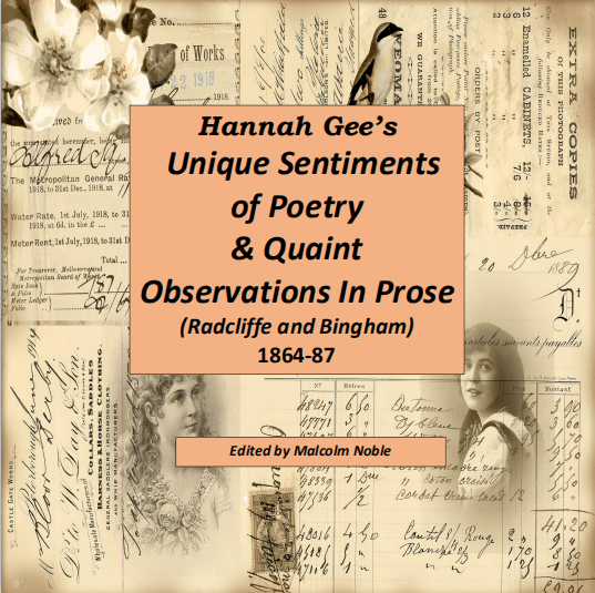 On New Years Day 1864, a nineteen year old woman from Radcliffe on Trent opened her notebook and set down her thoughts about nineteenth century life in rural Nottinghamshire. Three years later she married Thomas Horsepool and, as Hannah Horsepool, she kept her little book through the twenty years when she was raising a lively family in the market town of Bingham. She introduces us to people whom we might have met in a Radcliffe tavern or on a Bingham street more than one hundred and fifty years ago. We learn how she feels about things – spoilt children, drink, Kitchener, Robbie Burns, her childhood, her community and, fundamental to everything, her faith in a hereafter. In this edition, one of her great-great-grandchildren has taken that framework and attempted to build a ‘Hannah’s World’ that we are sure to enjoy. £7.99 (This book has no ISBN)